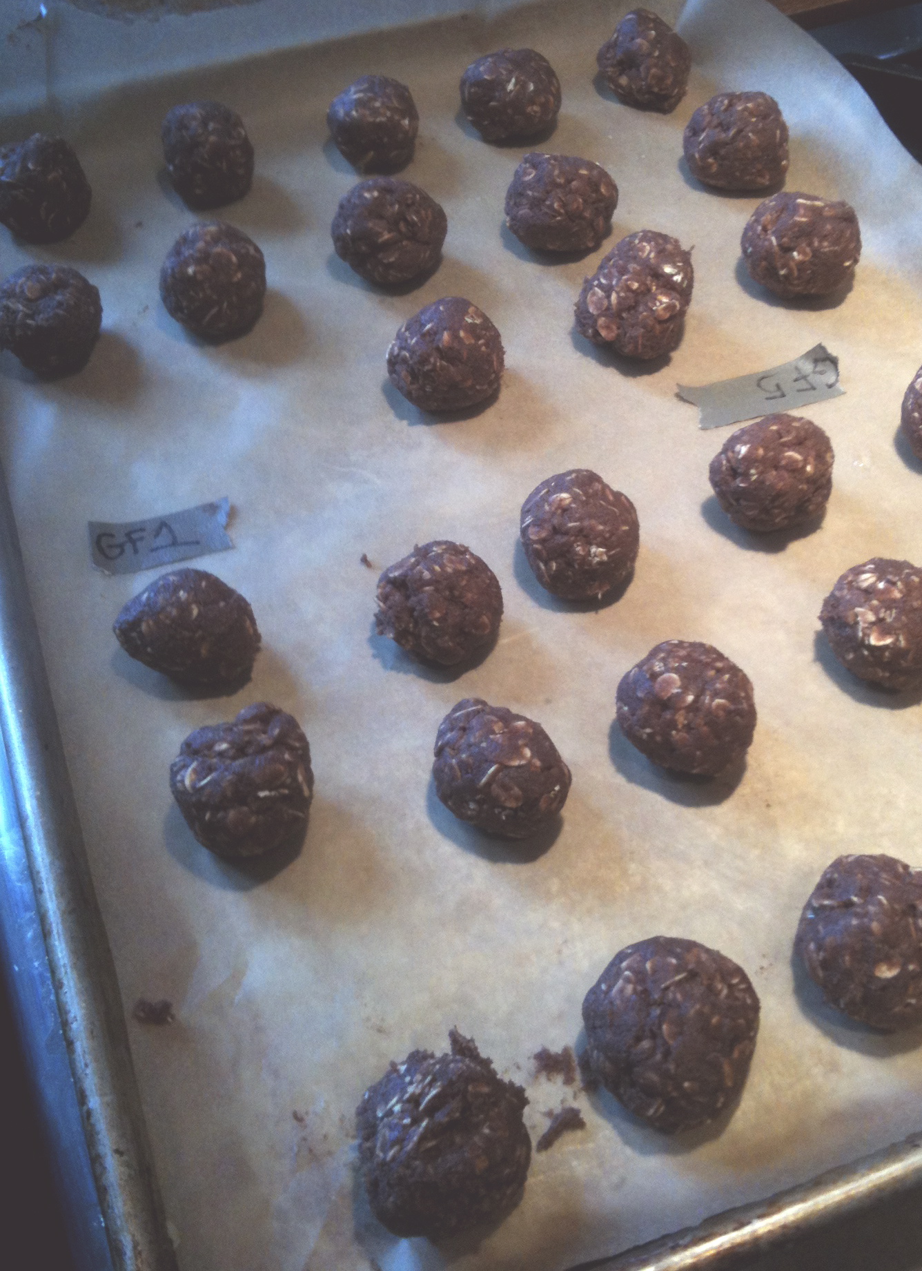 So I decided to tackle a couple of different flour substitutes in small batches, these were the first two in the oven.